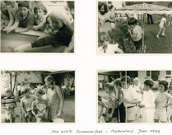 Am 12. September 1972 war es so weit: 43 fröhliche Kinder mit ihren sieben hoch motivierten Lehrern, darunter bereits ein Sprachtherapeut, zogen in das durch die Mittelpunkt-Schulreform freigewordenen Schulhaus von Auendorf ein. Es hatte drei Klassenräume und einen kleinen Turnsaal. In wenigen Monaten stieg die Schülerzahl der beiden Klassen auf 63 an und die ersten Wartelisten wurden angelegt. In jedem Jahr nahm die Schule eine neue 1. Klasse auf. Bald mussten zusätzlich Baracken errichtet werden. Fast alle Eltern halfen und bauten in engagierter Weise mit. Das soziale Miteinander in einer Pioniersituation ist anspornend und wärmend, wenn sie durch eine gemeinsam gefasste Idee getragen wird.