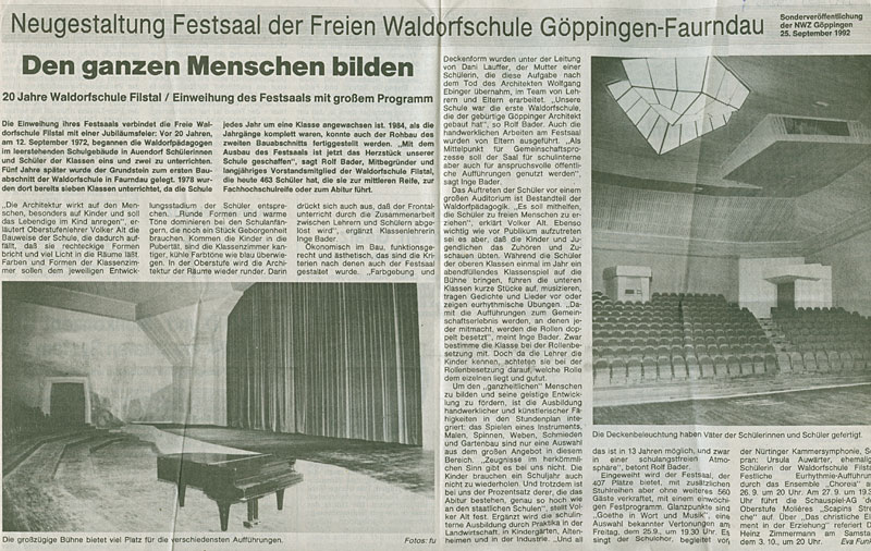 Möge es der Schule auch in der Zukunft gelingen, mit der übergreifenden Waldorf-Idee die Ideale ihrer Schüler in künstlerischer Weise zu wecken!