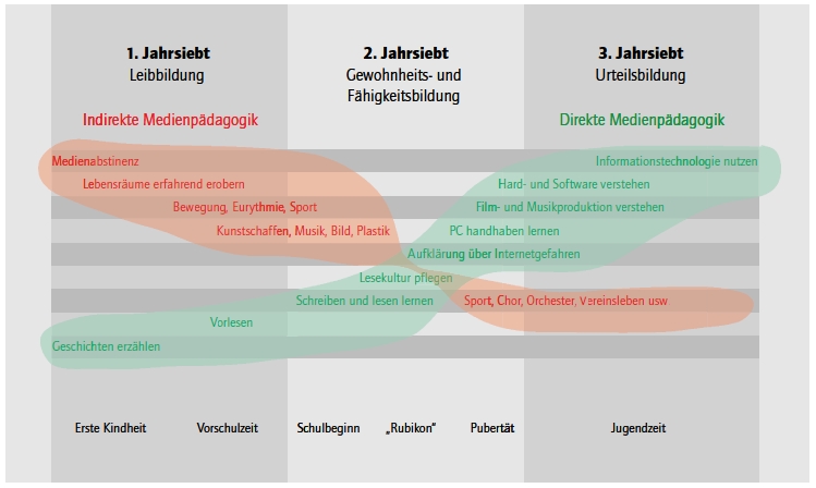 (Einzelheiten siehe Tabelle unten. Literatur zum menschenkundlichen Hintergrund: H. Kullak-Ublick: Menschenkundliche Gesichtspunkte zur Medienpädagogik, in: Struwwelpeter 2.0 , S. 6-9).