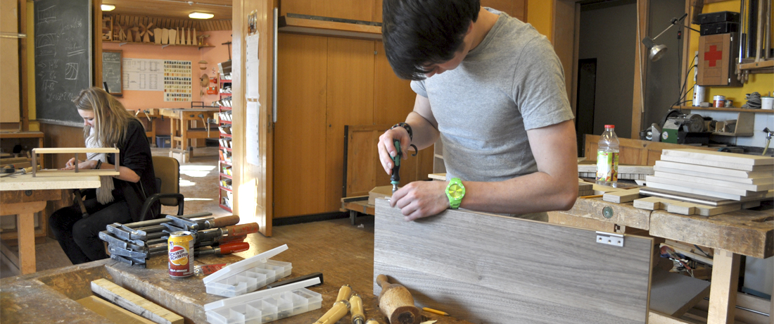 In der 11. Klasse haben sich die Schüler einen Zug gewählt, welchen sie in der 11. und 12. Klasse das ganze Jahr besuchen. Das bisher Gelernte wird vertieft und neu hinzu kommt, dass der Schüler an verschiedene Holzbearbeitungsmaschinen herangeführt wird. In der Regel wird im ersten Halbjahr für die Schule geschreinert, im zweiten Halbjahr ein Möbelstück für sich selber. Die Schüler lernen das Fachzeichnen kennen und müssen ein funktionsfähiges Möbel mit Tür und Schubkasten planen, zeichnen und herstellen.